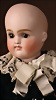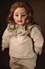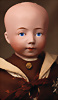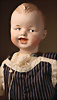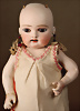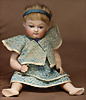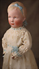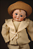 Gebrüder Heubach Charakterpuppe 8413, um 1912, rosé getönter Biskuit-Kopf, rundlich-volle Gesichtszüge, blaue Glasschlafaugen, gemalte, geschwungene Wimpern, fein gefiederte Augenbrauen, betonte Nasenlöcher und Augenwinkel, Mund plastisch modelliert (leicht geöffnet), sichtbare Zungenspitze, zwei obere Zähnchen, besonders liebenswerter, kindlicher Ausdruck, wohlgeformter Kompositionskörper, bewegliche Beine, gegliederte Arme mit festen Handgelenken, weißer Matrosenanzug, 30 cm Zustand: insgesamt ausgezeichnet