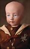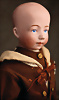 bislang kaum dokumentierte und zugleich extrem seltene Charakterpuppe, Modell 212 34 von der renommierten Catterfelder Puppenfabrik, um 1910, Charakterpuppe aus der 200er-Serie, Biskuit-Porzellan-Kurbelkopf, besonders ausdrucksvolles Kindergesicht -Junge, mit großen royalblauen, gemalten Augen, Nackenmarkierung C. P. 212 34, geschlossener Mund, spitz zulaufende Nase, hervorgehobene Oberlippe, die durch feine Schattierungen eine bemerkenswerte Tiefe erhält, auf passendem Gliederkörper, farblich etwas überarbeitet, besonders hervorzuheben ist die hochwertige originale Bekleidung: ein eleganter brauner Anzug mit dekorativen Ordensabzeichen mit Krone, 36 cm Marke: C.P. 212 34. Zustand: insgesamt ausgezeichnet CH-ID 1000, das Objekt befindet sich im Schweizer Zolllager, für Bieter außerhalb der Schweiz muss ein Versand vorgenommen werden, bei Einfuhr in die EU fallen Zoll, Umsatzsteuer u. Bearbeitungsgebühren an, für Bieter außerhalb der EU gelten die dort üblichen Zollbedingungen, Provenienz: Sammlung ,, Cecilie Juul Møller "