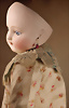 Biskuitpuppe, um 1880, charmante Petite-Puppe mit originalem Kostüm, Biskuitkopf, braune Schlafaugen, geschl., Mund, umrahmt von dunklem Lidstrich, fein gemalten Wimpern und filigranen, mit Pinselstrichen gearbeiteten Augenbrauen, dezent akzentuierter geschlossene Mund mit 2 feinen Mittellinien, früher orig., Körper mit festen Handgelenken, blonde kurze Mohairperücke, Gipsdeckel, antiken Originalkostüm, 24 cm Zustand: allgemein hervorragend Markierung: Kopf 3 CH-ID 1073, das Objekt befindet sich im Schweizer Zolllager, für Bieter außerhalb der Schweiz muss ein Versand vorgenommen werden, bei Einfuhr in die EU fallen Zoll, Umsatzsteuer u. Bearbeitungsgebühren an, für Bieter außerhalb der EU gelten die dort üblichen Zollbedingungen, Provenienz: Sammlung ,, Cecilie Juul Møller "