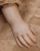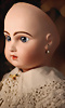 Petite Trésors, extrem seltene, ungemarkte Jules Steiner Serie, die dem Typus Brevete ähnelt, von diesem Puppen Typ wurde vermutlich nur eine Handvoll Exemplare hergestellt Frankreich, um 1880, aus der frühesten Jules Steiner Produktion, sanftes französisches Bébé im eleganten Spitzenensemble, CH-ID 1051, Biskuit-Porzellan-Kopf auf Porzellan Brustplatte, zart modellierte Gesichtszüge, weich modellierten Wangen, fliehendes Kinn, hellblaue leichtmandelförmige Glasaugen mit dunkelblauen Irisrändern, schattierte Augenlieder, gefederte sowie leicht schattierte Augenbrauen, geschwungene gemalte Wimpern, akzentuierte Nasenlöcher, geschlossenen Mund mit akzentuierte herzförmiger Oberlippe, kindlich wirkender Ausdruck, errötete Wangen, leichtes Stupsnäschen, durchstochene Ohren, Biskuit-Unterarme mit stark modellierten Fingernägeln, abgenähter Ziegenleder-Körper mit Kniewickeln, altes spitzen Chemise Schuhe und Strümpfe, alter Korkdeckel, alte Fell-Perücke, passende Haube, 36 cm Quellen Nachweis : THE DOLLS OF JULES NICOLAS STEINER, by Dorothy A. McGonagle Seite, 61 & 171 Makierung: Nackenmarkierung 2-0, Schulterplatte D Zustand: ein Glasauge mit Riss, vereinzelt kleinere Ofenstaub-Einschlüsse, mini Chip am rechten Ohrloch, sonst allgemein wunderschöner Zust., CH-ID 1051, das Objekt befindet sich im Schweizer Zolllager, für Bieter außerhalb der Schweiz muss ein Versand vorgenommen werden, bei Einfuhr in die EU fallen Zoll, Umsatzsteuer u. Bearbeitungsgebühren an, für Bieter außerhalb der EU gelten die dort üblichen Zollbedingungen, Provenienz: Sammlung ,, Cecilie Juul Møller "