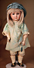 Charakterpuppe „Prinzessin Juliana“ von Gebrüder Heubach, um 1911, dargestellt als Porträt der jungen Prinzessin Juliana der Niederlande (geb. 1909) Biskuit-Porzellan-Vollkopf, zart rosé getöntem Biskuit, Nackenmarkierung 78381, schmale, blaue nach oben blickenden Intaglio-Augen, akzentuiert durch schwarzen oberen Lidstrich und feine Lichtpunkte, geschlossener Mund, modellierte, kurz geschnittenem braune Haare, vollplastisch ausgearbeitete hellblaue Porzellanschleife, auf passendem Glieder-Körper, 45 cm, dieses Modell zählt zu den seltensten Charakterpuppen von Gebrüder Heubach Zustand: allgemein exzellent CH-ID 1040, das Objekt befindet sich im Schweizer Zolllager, für Bieter außerhalb der Schweiz muss ein Versand vorgenommen werden, bei Einfuhr in die EU fallen Zoll, Umsatzsteuer u. Bearbeitungsgebühren an, für Bieter außerhalb der EU gelten die dort üblichen Zollbedingungen, Provenienz: Sammlung ,, Cecilie Juul Møller "