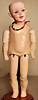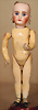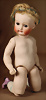Porzellan-Kurbelkopf-Puppe, off. Mund, modellierte Zunge, zwei Zähne unten, deutliche Backengrübchen, Schlafaugen, gegliederte Masse-Körper, 35 cm, Markierung: 3 1 / 2 Heubach in Sonne, DEP Germany