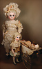 Pia`s Blog:,,…vermutlich ein Unikat. Jules Nicolas Steiner begann bereits im frühen 19. Jahrhundert mit ersten Experimenten in der Puppenherstellung und zählt zu den wegweisenden Pionieren auf diesem Gebiet. Bislang sind Bébé-Puppen mit Lederkörper aus seiner Werkstatt kaum dokumentiert – umso bemerkenswerter erscheint dieses außergewöhnliche Exemplar. Bei der vorliegenden Puppe handelt es sich um ein seltenes Übergangsmodell: die Verbindung eines klassischen Lederkörpers mit einem fein gearbeiteten Bébé-Kopf deutet auf eine experimentelle Phase hin, möglicherweise im Bestreben, eine frühe Form der späteren „Brevete“-Modelle zu entwickeln oder vorwegzunehmen. Der Ausdruck dieser Puppe ist von einer besonderen Intensität und bleibt nachhaltig im Gedächtnis – ein poetisches Kleinod von stiller Ausstrahlung und großer künstlerischer Präsenz. Sie stammt aus einer über Jahrzehnte mit großer Hingabe und feinem Gespür aufgebauten Sammlung und verkörpert in eindrucksvoller Weise die Philosophie der Sammlung Juul Møller: die Kunst, im Kleinen das Außergewöhnliche zu entdecken. Ihre subtile Raffinesse, die harmonische Gesamtwirkung sowie die feine, qualitätsvolle Ausführung machen dieses außergewöhnliche museale Stück zu einem höchst begehrenswerten Objekt für anspruchsvolle Sammler..."