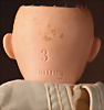 charmante Biskuit-Kopf, Baby, aus der Werkstatt von Armand Marseille, gefertigt um 1920 für Borgfeldt of New York, Biskuitkopf ist mit fein gemalten Haaren, blaue seitlich blickende Intaglio Augen, kleine Stupsnase, ausgeformte Wangen mit Grübchen, Melonen Mund, modellierte Haare, auf Masse-Sitzbabykörper, bewegliche Arme und Beine Marke: G.B. 252 Germany A 5 / 0 M Zustand: insgesamt sehr schöner, Zustand, Haarriss am Hinterkopf, sowie farbliche Retuschen / Restauration, 1 Fuß nachträglich geklebt CH-ID 1014, das Objekt befindet sich im Schweizer Zolllager, für Bieter außerhalb der Schweiz muss ein Versand vorgenommen werden, bei Einfuhr in die EU fallen Zoll, Umsatzsteuer u. Bearbeitungsgebühren an, für Bieter außerhalb der EU gelten die dort üblichen Zollbedingungen, Provenienz: Sammlung ,, Cecilie Juul Møller "