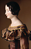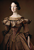 Seltene frühe KPM Porzellankopf-Dame, um 1845, fein modellierter Chinahead-Schulterkopf zeigt das Bildnis einer erwachsenen Dame mit schmalem, ovalem Gesicht und einem auffallend langen, elegant ausgeformten Hals, kunstvoll gearbeitete, braune Haar ist mittig gescheitelt und weich um das Gesicht gelegt. Seitlich schmücken jeweils vier Ringellocken die Partie um die Ohren, während im Nacken ein fein modellierter Chignon gearbeitet ist, fein ausgeführte Gesichtsbemalung, blaue gemalte Augen, roter Liedstrich, geschlossenen Mund, sehr schöne auffallende modellierte Nase, Leder-Körper mit schlanker Taille, glasierte Unterarme, glasierte Unterschenkel mit modellierten schwarzen Stiefeln, charmantes antikes Seiden Kostüm, besticht durch eine ausgeprägt schmale, schnabelartig zulaufende Taille, das ihre elegante Erscheinung stilvoll unterstreicht, 41 cm Zustand: insgesamt sehr schöner, orig. Zustand CH-ID 1002, das Objekt befindet sich im Schweizer Zolllager, für Bieter außerhalb der Schweiz muss ein Versand vorgenommen werden, bei Einfuhr in die EU fallen Zoll, Umsatzsteuer u. Bearbeitungsgebühren an, für Bieter außerhalb der EU gelten die dort üblichen Zollbedingungen, Provenienz: Sammlung ,, Cecilie Juul Møller "