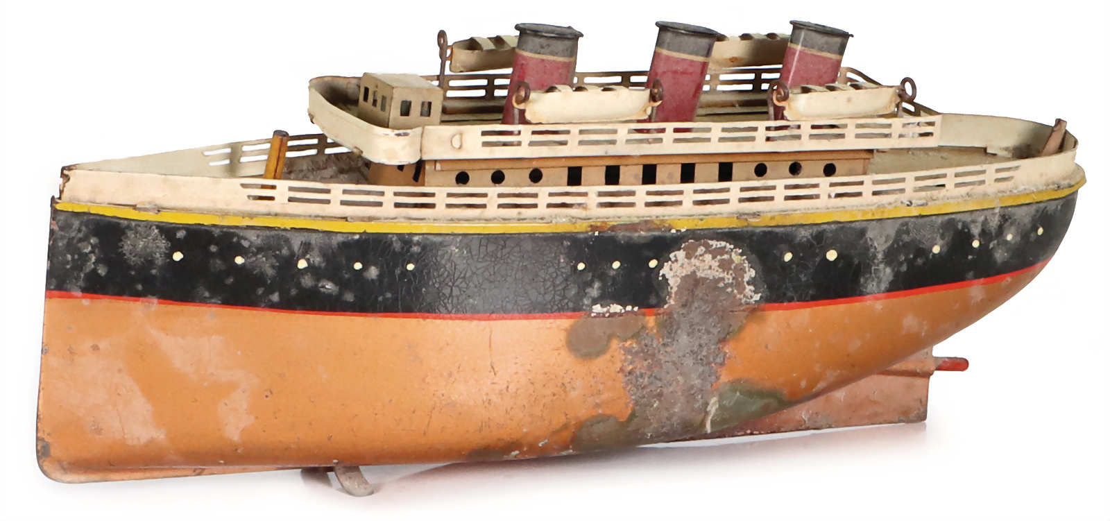 Ozean - Liner, Blech, lithogr., besp. Zust., Lackfehler, nicht ganz komplett, Schraube fehlt, Uhrwerk defekt, 26 cm