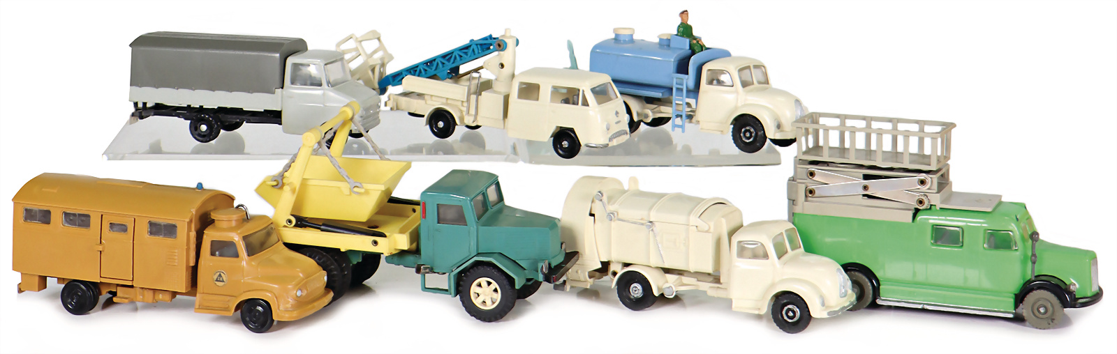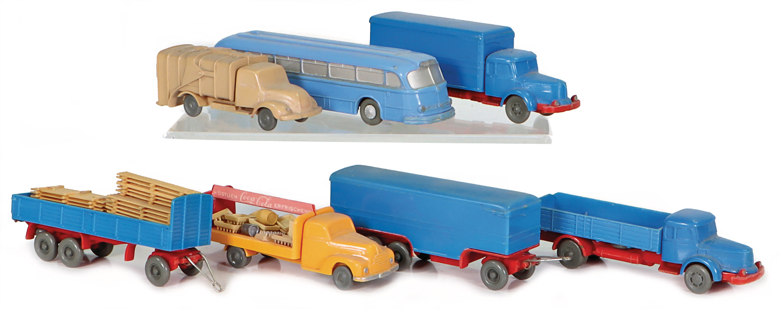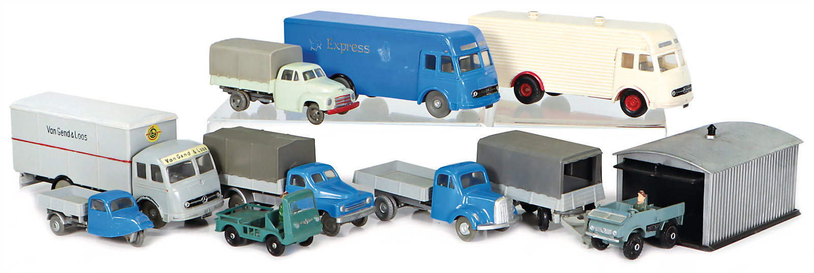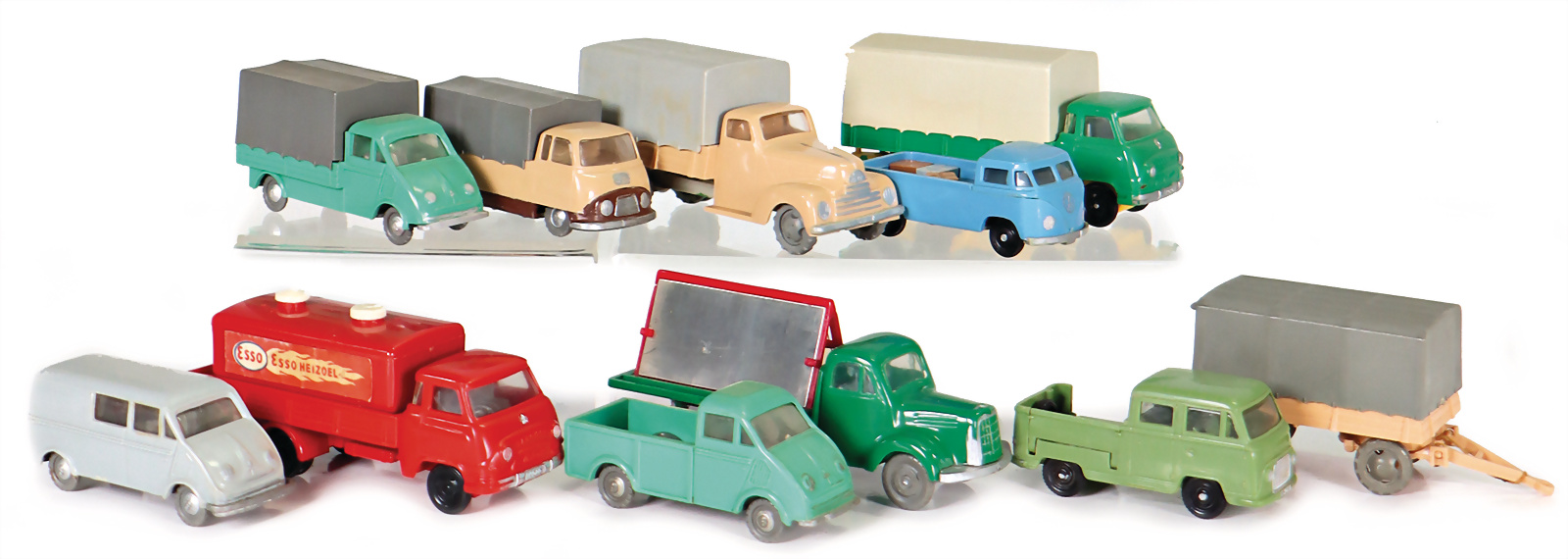 Konv. Plastik, Transporter, Mercedes-Benz, Hanomag, Goliath, Opel Blitz, Unimog, 1 Garage, guter Zust.
