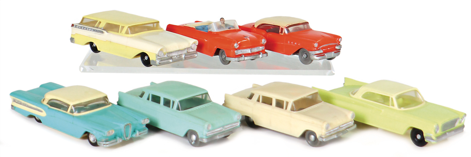 Konv. Plastik, 7 Teile, PKW, Mercury Opel Kapitän in untersch. Farben, Buick Riviera, Ford Fairlane Sunliner, Ford, Chrysler Windsor, guter Zust.