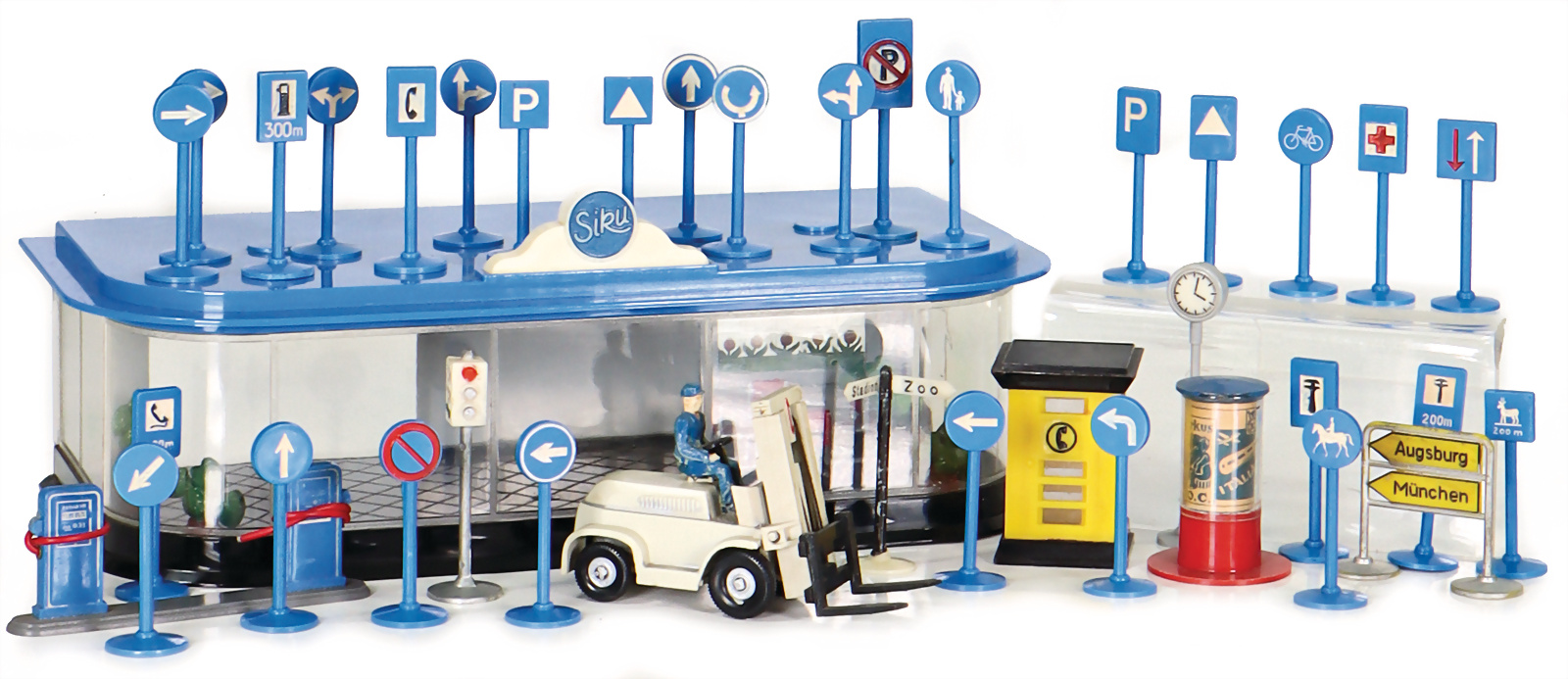 Plastik, Verkaufsraum, Gabelstapler, Litfaßsäule, viele Verkehrszeichen, guter Zust.