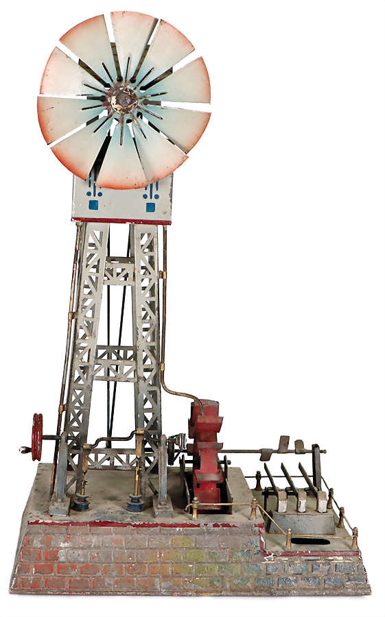 Windmühle mit Wassermühle und Hammerwerk, Blech, besp. Zust., leichter Flugrost, H: 47 cm