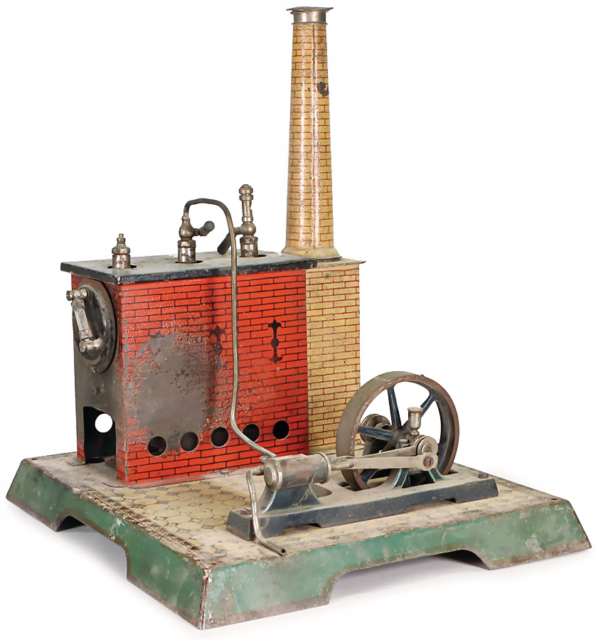 Dampfmaschine, Blech, lithogr., besp. Zust., Grundplatte 26 X 29 cm, auf Funktion nicht geprüft