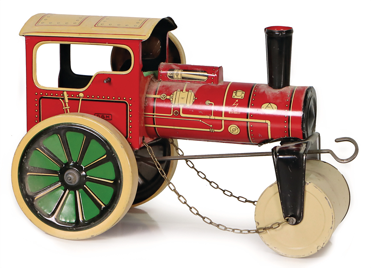 Dampfwalze, Blech, lithogr., Made in US Zone Germany, D. G. M., D. P., etwas verstaubt, sonst gut, L: 24 cm