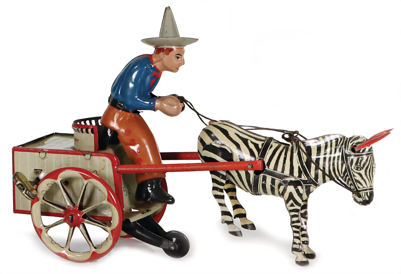Mexikanischer Wagen mit Zebra, (Zebra Cart), NA. NU, made in Germany, DR WZ, Blech, lithogr., Nr. 752, Uhrwerk hakt, min., Lackschäden, sonst gut, L; 18 cm