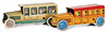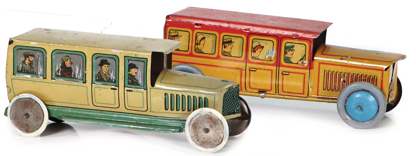 2 Art., Bus, Blech, lithogr., Räder teils farblich nachgebessert, L: 13 cm, bitte besichtigen