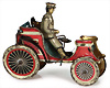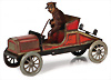 Offener Rennwagen, mit Fahrer, Blech, lithogr., Uhrwerk intakt, ein wenig Lithoabrieb, Lackfehler, ca.1910, L: 17 cm