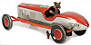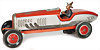 Rennwagen, T. C. 829, Blech, lithogr., min., Lackschäden, Uhrwerkantrieb, Uhrwerk hakt, mit Blechfigur, liegt lose bei, L: 34 cm