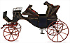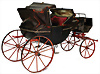 frühe und beeindruckend große Kutsche, um 1875, Modell einer vierrädrigen Vis-à-vis-Landauer-Kutsche mit außenliegendem Kutschersitz, gefertigt aus geprägtem und handgelötetem Blech, aufwendig gestaltete Passagierraum verfügt über zwei einander gegenüberliegende Sitzbänke (vis-à-vis) mit originaler, gesteppten Seiden-Innenausstattung, zweiteilige, separat klappbaren Verdecke vorne und hinten, welche die klassische Landauer-Bauweise widerspiegeln, originaler, etwas eingestaubter Zustand mit altersbedingten Gebrauchsspuren, Oxidation, Abrieb und partiellen Beschädigungen an den Lederverdecken, große Gussspeichenräder, Trittbrett, 2 x Kutschenlaternenhalter, L: 61 cm H: 36 cm, T: 24 cm, schöner original Zustand für diese Zeit, mit altersbedingten Lackfehlern