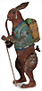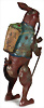 Hase mit Kiepe, Pfeife u. Stock, Blech, handlackiert, 18 cm, Uhrwerk intakt, Lackfehler, bespielt, ausgefallen