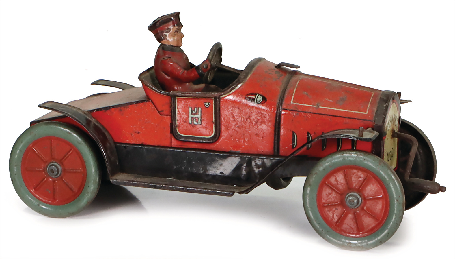Mobil, 1020, 20er Jahre, Blech, lithogr., mit Fahrerfigur fehlt, bespielt, Schwungradantrieb intakt, 20 cm