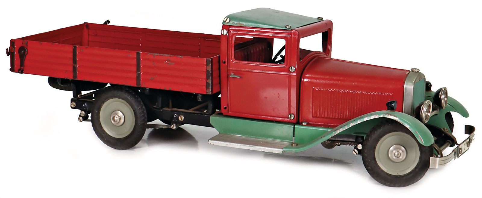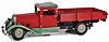 LKW, Zugmaschine ohne Brückteil, Blech, lithogr., deutsch, Vorkrieg, Limousine, Bakelitaufbau, Blechboden, Frontscheibe fehlt, Uhrwerk klemmt ein wenig kl. LKW ohne Antrieb, Bakelit, 17 cm