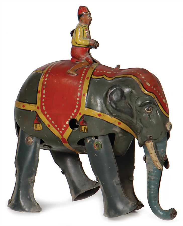 Elefant mit Elefantenführer, Blech, lithogr., H: 13 cm, Uhrwerk klemmt, Orig.-Zust., leicht bespielt