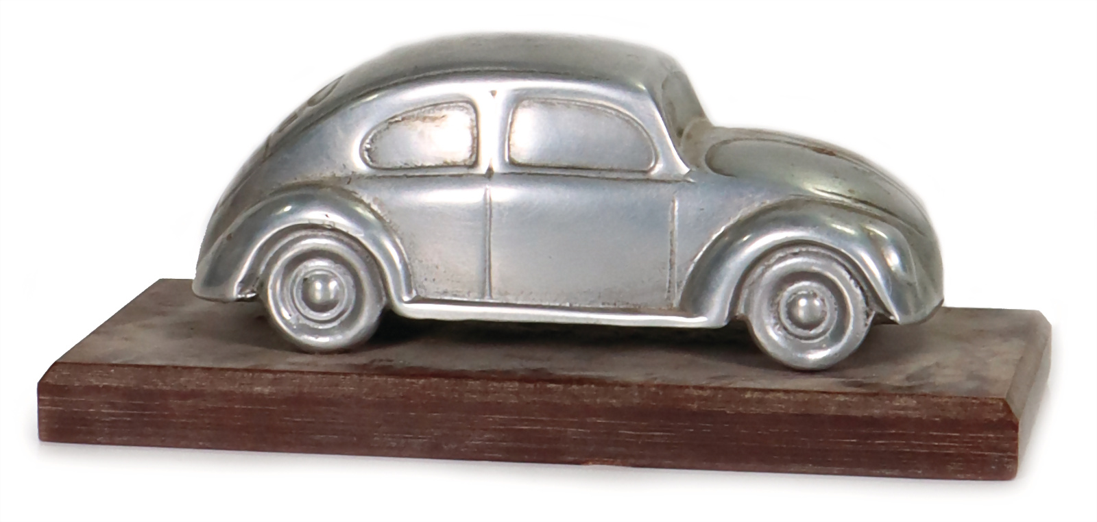 Tischmodell, Aluminium, Brezelfenster - Käfer, auf Holzplatte montiert, 11,5 cm