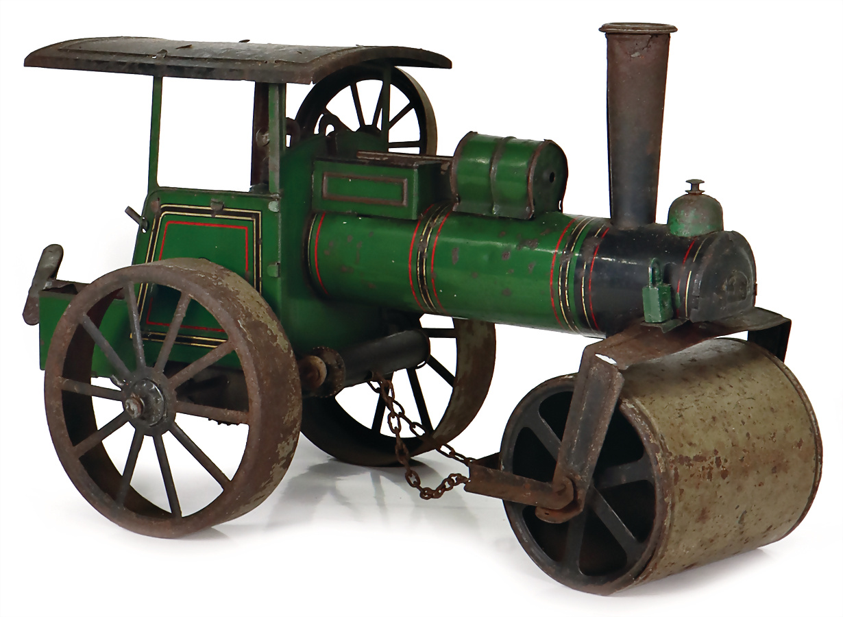 Dampfwalze, SMAG Nürnberg, Blech, lithogr., Uhrwerkantrieb, intakt, geht jedoch etwas schwer, L: 24 cm, bespielt, etw. Flugrost, 20er/30er Jahre