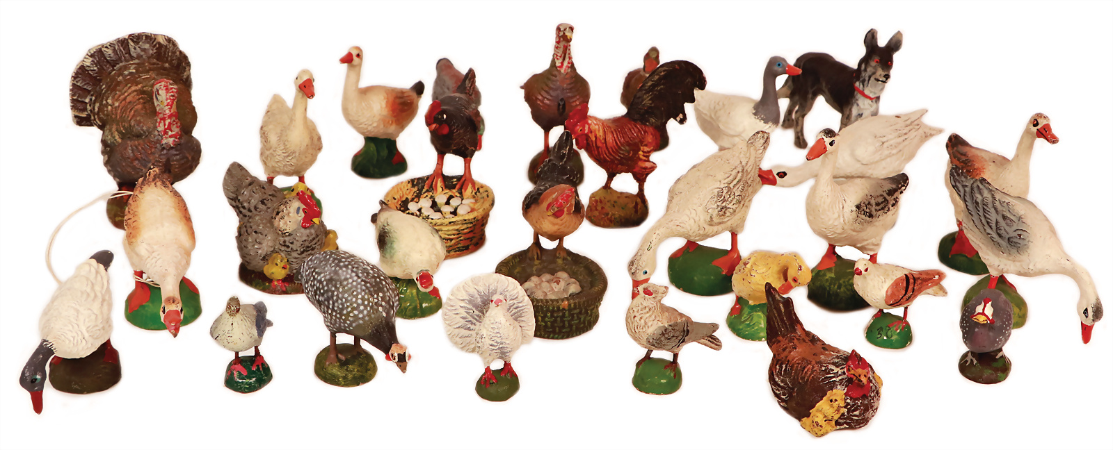 Federvieh, Enten, Hühner, Truthahn, Huhn mit Küken, Huhn mit Nest, 1 Schäferhund, Zust. 2, das Objekt befindet sich in der Schweiz, diese Artikel können abgeholt oder versandt werden, bei Einfuhr in die EU fallen Zoll u. Umsatzsteuer an, eine Verzollung kann auch persönlich vorgenommen werden, für Bieter außerhalb der EU gelten die dort üblichen Zollbedingungen