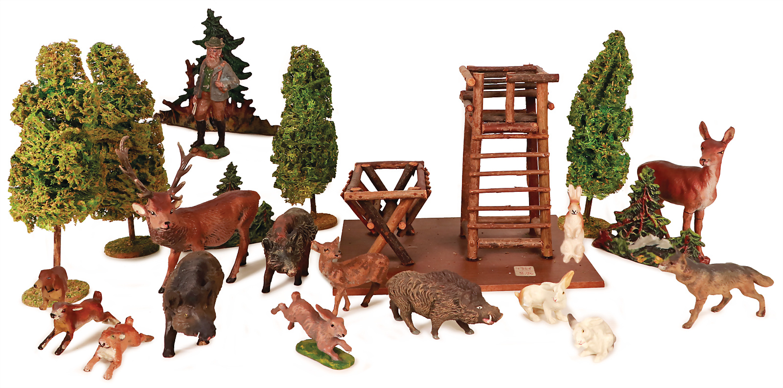 Jägerszene, Hochstand mit Futtergrippe, Luffabäume, Jäger, 10,5 cm, meist Zust. 1-2, das Objekt befindet sich in der Schweiz, diese Artikel können abgeholt oder versandt werden, bei Einfuhr in die EU fallen Zoll u. Umsatzsteuer an, eine Verzollung kann auch persönlich vorgenommen werden, für Bieter außerhalb der EU gelten die dort üblichen Zollbedingungen