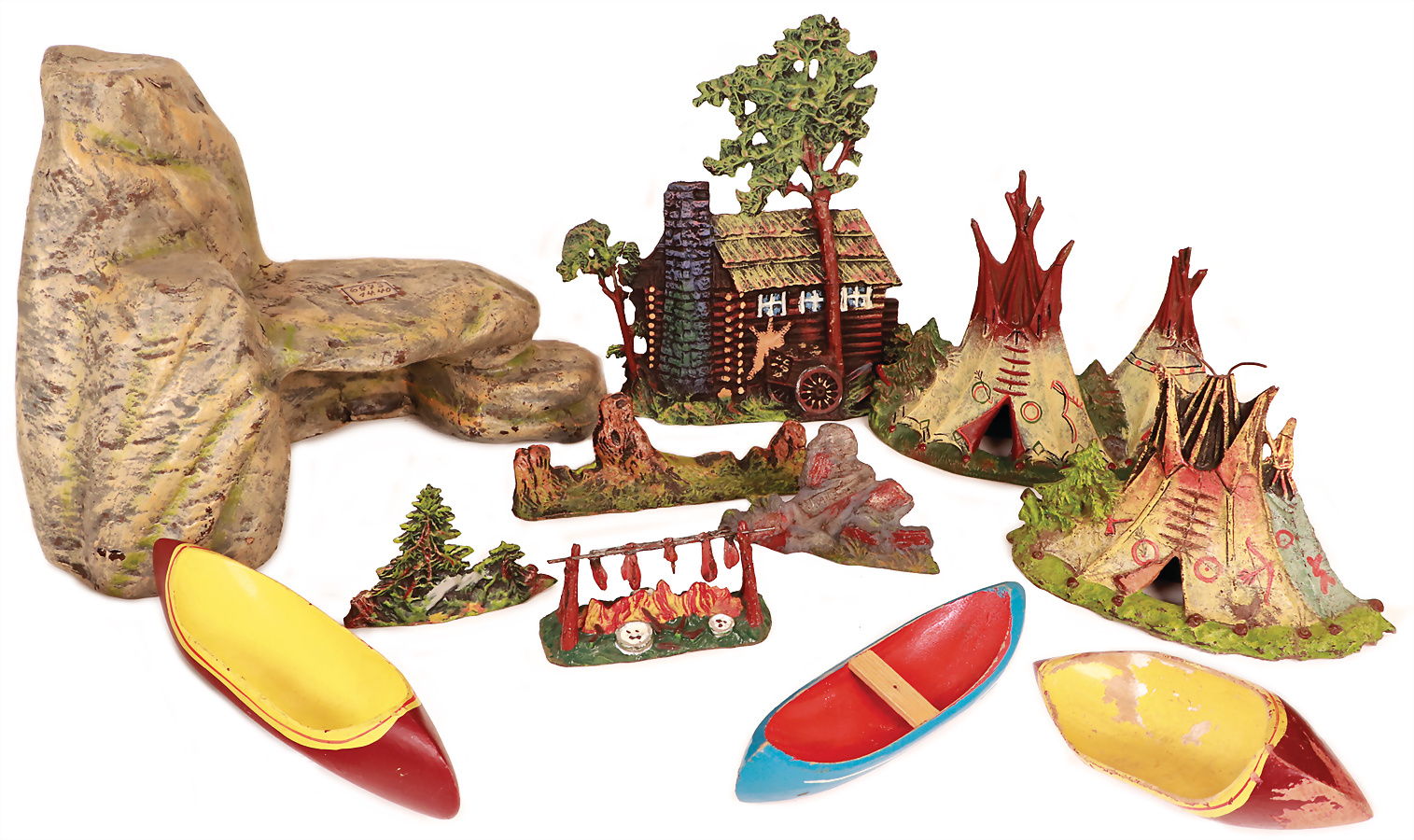Felsen, Masse, H: 24 cm, Blockhütte, mit Baum, selten, 2 Tipis, Feuerstelle, 1 Fleischstück fehlt, sonst Zust. 2, 2 Kajaks, das Objekt befindet sich in der Schweiz, diese Artikel können abgeholt oder versandt werden, bei Einfuhr in die EU fallen Zoll u. Umsatzsteuer an, eine Verzollung kann auch persönlich vorgenommen werden, für Bieter außerhalb der EU gelten die dort üblichen Zollbedingungen