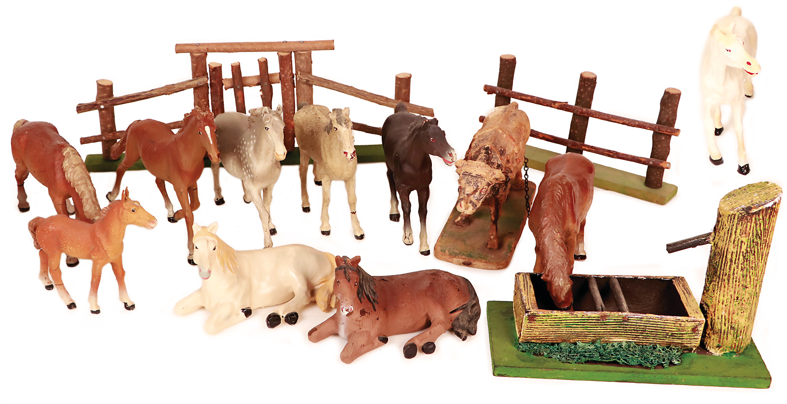 Konv. meist ELASTOLIN u. LINEOL, Masse, Pferde, Zaunteile, Brunnen, meist guter Zust., das Objekt befindet sich in der Schweiz, diese Artikel können abgeholt oder versandt werden, bei Einfuhr in die EU fallen Zoll u. Umsatzsteuer an, eine Verzollung kann auch persönlich vorgenommen werden, für Bieter außerhalb der EU gelten die dort üblichen Zollbedingungen