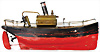 Dampfschiff, früh, 31 cm, Holz, handlackiert, mit Dampfmaschine, Messingblech, mit oszillierendem Zylinder, techn. nicht geprüft, altersbedingt Lackfehler am Rumpf, Orig.-Zust.