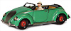 CKO, Verwandlungskäfer, 15,5 cm, Blech, lithogr., guter Zust., Uhrwerk intakt, mit Fahrerfigur