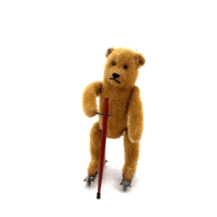 Bär, ca. 1915, 48 cm, schönes, volles, rotbraunes Mohair, Schuhknopfaugen, Filz-Tatzen in den Füßen mit Pappeinlage, Knopf vorhanden, lange abgeknickte Arme, leichter Buckel, sehr schöner Ausdruck, sehr schöner Orig.-Zust., Filz-Tatzen bis auf minim. Punkte in sehr gutem Zust., CH-Nr. 357