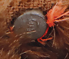 Samt-Hase, sitzend, orangefarbener Samt, mit Knopf, Druckbuchstaben, langgezogenes f, minim. Reste der roten Fahne, gr. Glasaugen, drehbarer Kopf, 19 cm, sehr schöner Orig.-Zust., leichte kl. Farbunterschiede auf dem Rücken, sonst sehr gut, CH-Nr. 371