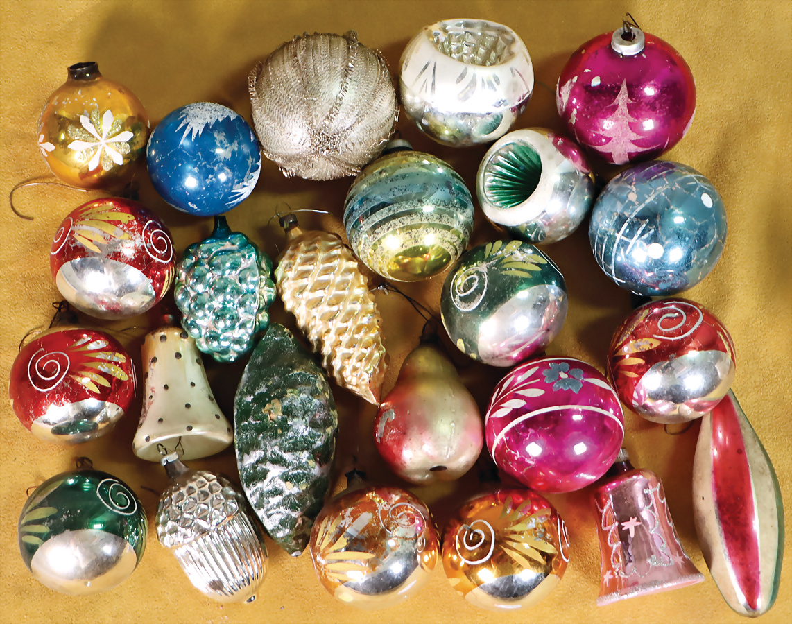 Konv. Weihnachtsschmuck, 25 Teile, Kugeln, Zapfen, 2 Reflektorkugeln, "Spielzeugmuseum Graz"