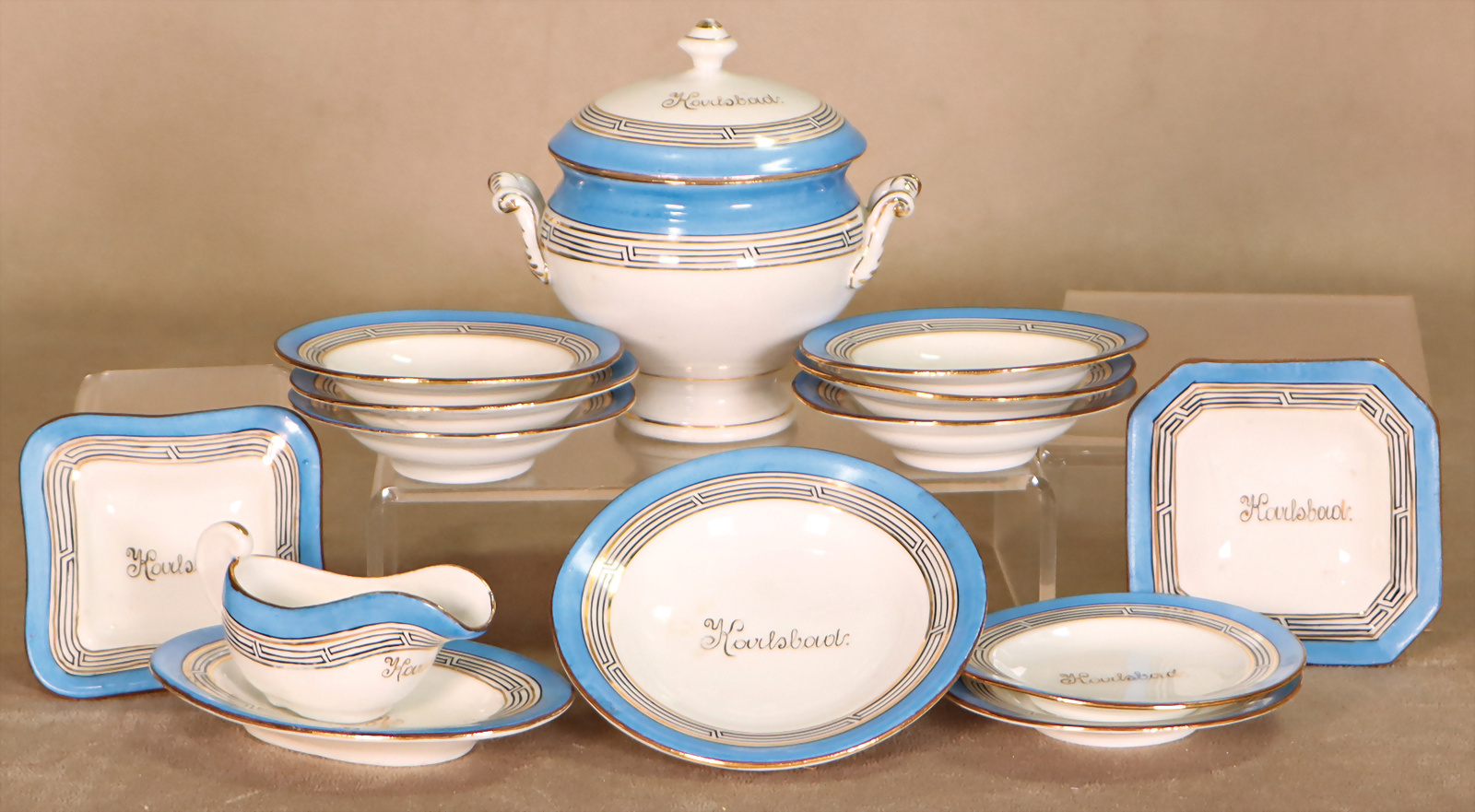 Konv. Porzellan, Speise-Service, Karlsbad, Suppenschüssel, H: 10 cm, Sauciere, Teller, Schalen, "Spielzeugmuseum Graz"