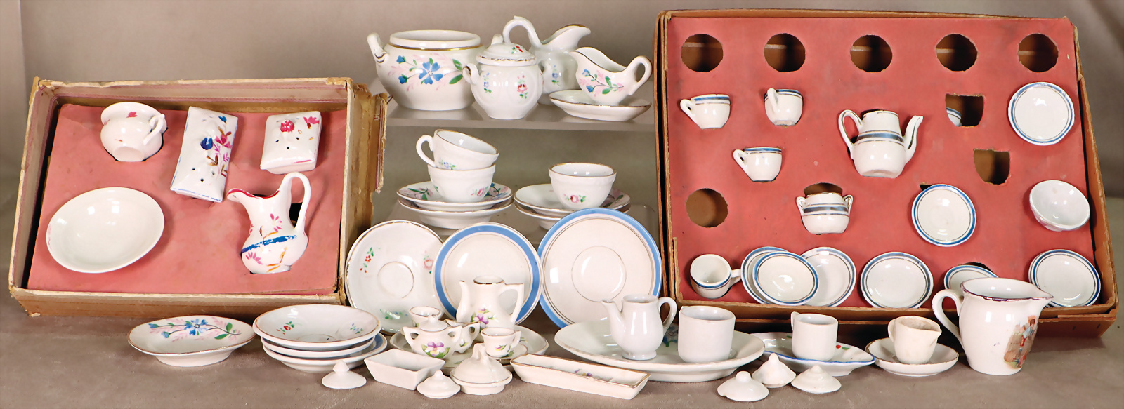 Konv. Speise-Service-Teile, im Kart., nicht kompl., Einzelteile, Porzellan, meist guter Zust., einige Teile, etwas angeschlagen, "Spielzeugmuseum Graz"