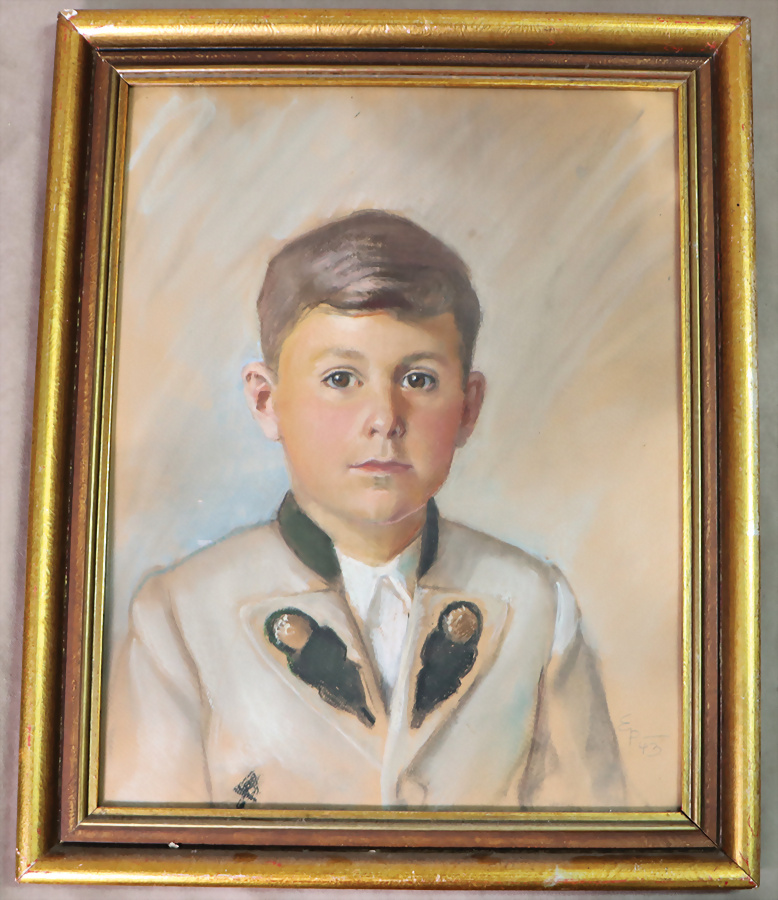 2 Teile, Aquarell, Kind mit Stofftier, gerahmt, Innenmaß 51x40 cm, Junge in Trachtenkleidung, Masse-Abplatzer am Rahmen, Transportaufwand beachten, besser Selbstabholer , "Spielzeugmuseum Graz"