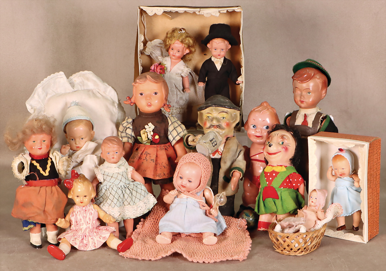 Konv. Puppen, Celluloid, Kunststoff, Masse, kl. Puppen, nicht alle Puppen fotografiert, Kleinteile, meist guter Zust. , „Spielzeugmuseum Graz“