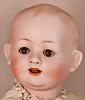 Sonne, 47622, Charakter-Junge, 43 cm, Kurbelkopf, braune Intaglio-Augen, fein ausmodell. Haare, Gliederkörper, neuer, Porzellan-Charakter-Baby, BURGGRUB, 40 cm, Kurbelkopf, braune Schlafaugen, off. Mund, Zähne u. Zunge, Sitzbaby-Körper mit abstehendem Zeh, Mohair-Perücke, KÄMMER & REINHARDT, 22, Porzellan-Charakter-Baby, 36 cm, Gummis lose, „Spielzeugmuseum Graz“