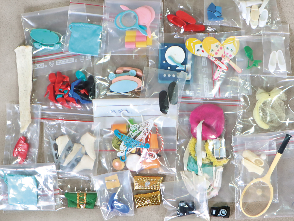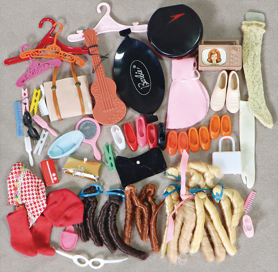 Barbie, interessante Fundkiste, Zubehör, Einzelteile, Schuhe, Taschen, Haaransätze, Kleinteile