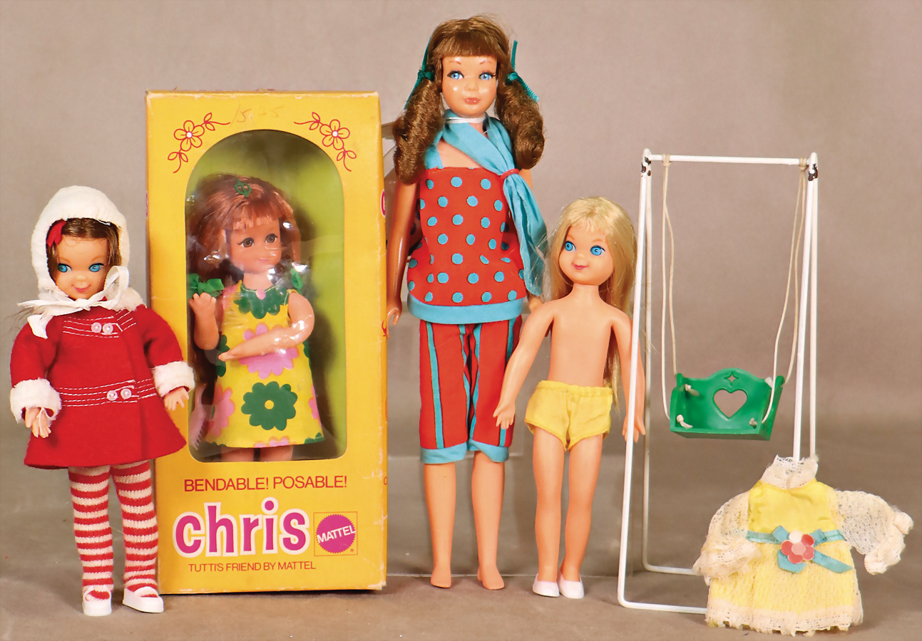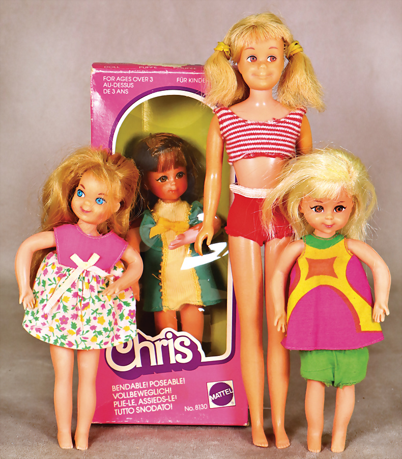 Barbie, Scooter, guter Zust., 3x Chris, davon 1x im Orig.-Kart., guter Zust.