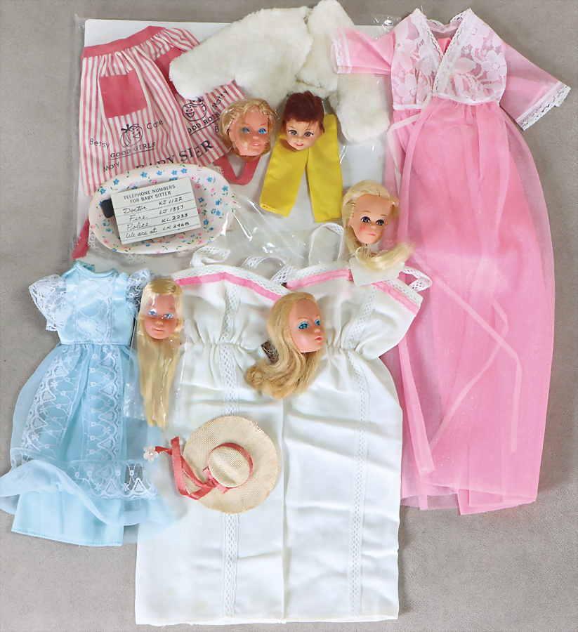 Barbie, Konv. Köpfe, untersch. Zust., dazu Outfit Babysitter, einzelner Hut, einzelne Outfitteile