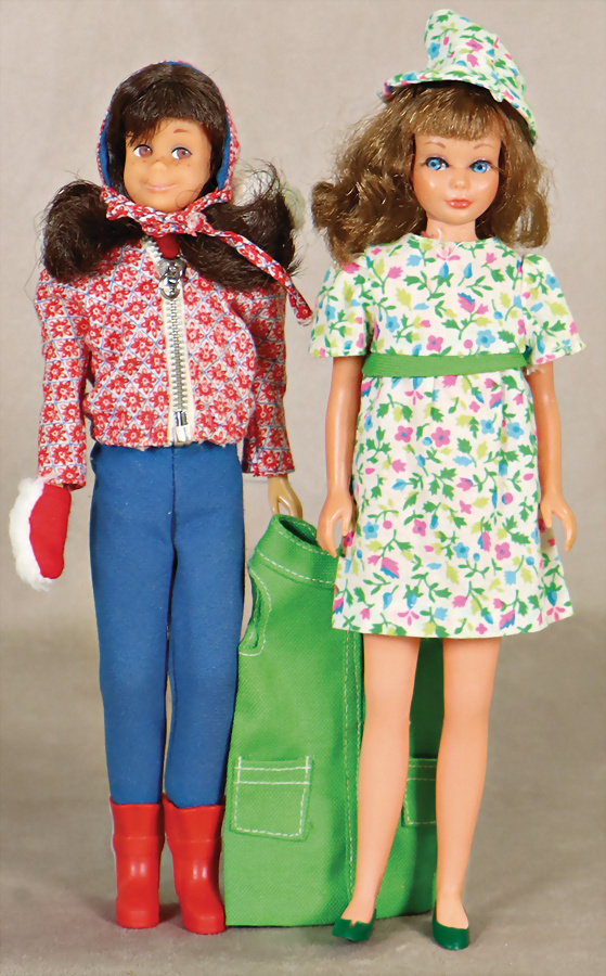 Barbie, 2x Skipper, 1973, mit Outfit, Barbie bendable leg, Twist & Turn, 1973, mit Outfit u. Zubehör, sehr guter Zust.