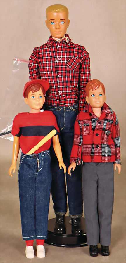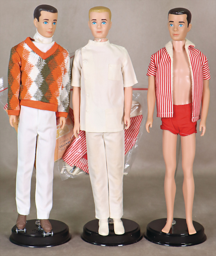 Barbie, 3 Teile, Painted Hair Ken, 1965, mit Outfit 1409, Ricky, 1965, Outfit 1506, Ricky, 1965, Outfit 1504, sehr guter Zust.