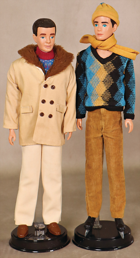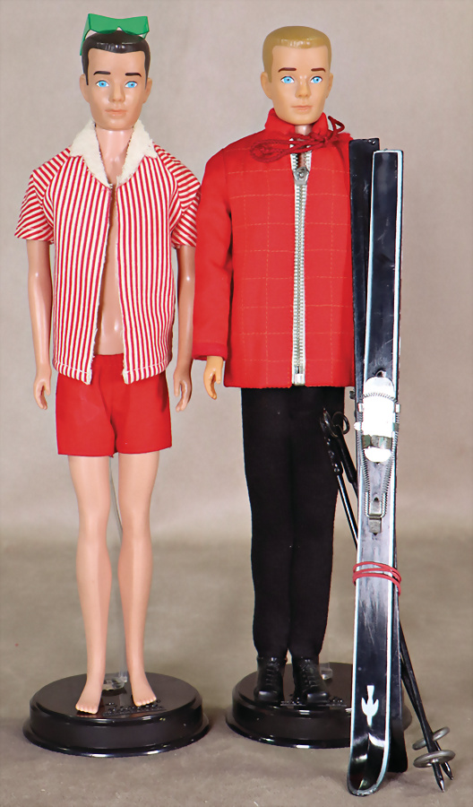 2x Ken, flocked Hair, 1x mit Outfit 785, 1961/63, sowie 787, guter Zust.