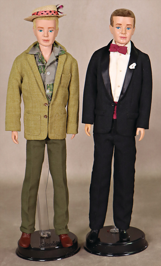 2x Ken, Painted Hair, 1964, mit Outfit 798, kl. Fleck an 1 Wange bei der Puppe mit dunklen Haaren, sonst guter Zust.