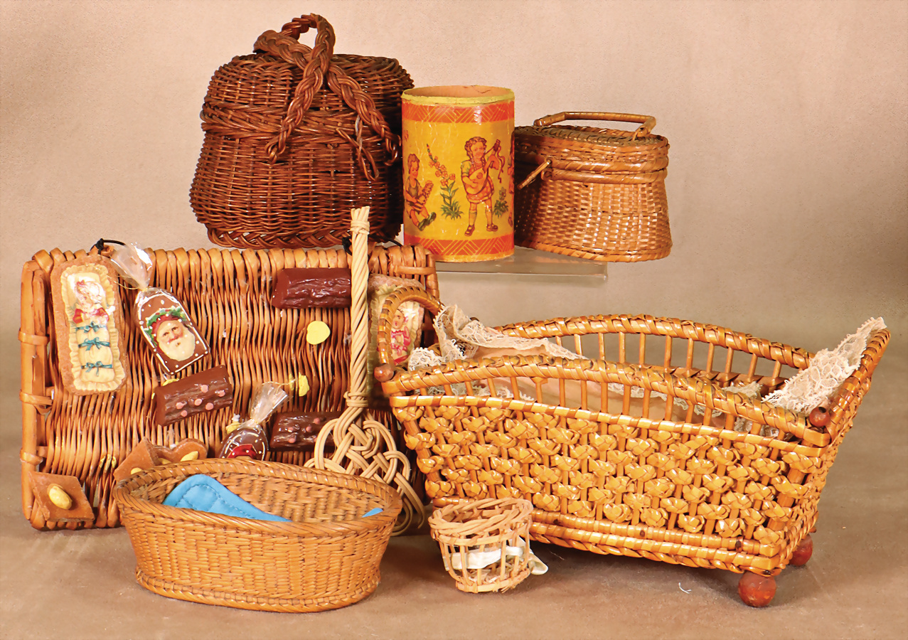 Konv. Puppenstuben-Ausschmückungsteile, Korb Geflecht bis 21 cm