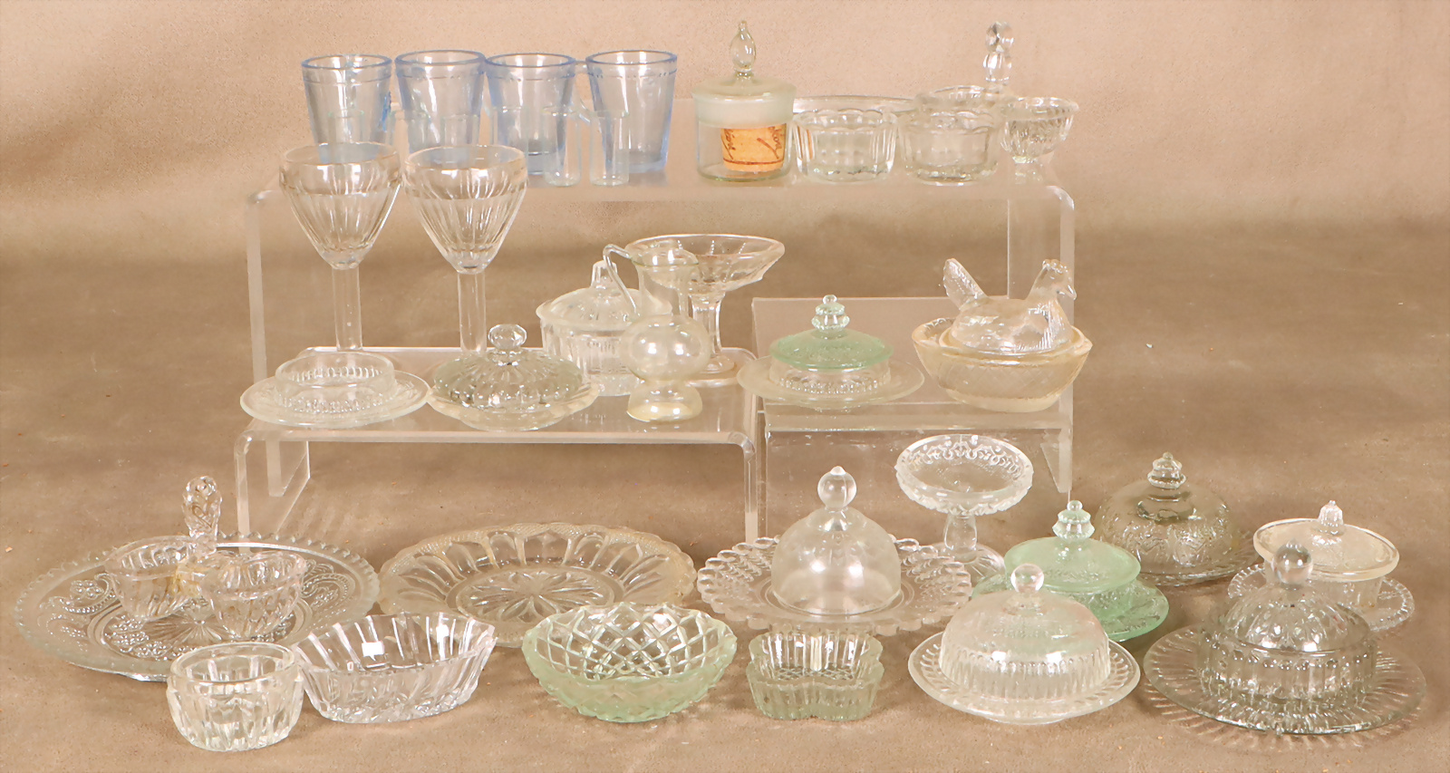 Konv. Geschirr, Glasschalen teils mit Deckel, Tassen, Krüge, unterschiedliche Größen
